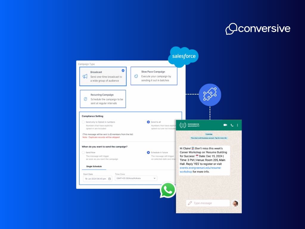 Choosing between Salesforce’s native tools and Conversive comes down to how deeply you want WhatsApp integrated into your CRM, and how critical compliance, automation, and scalability are to your organization.